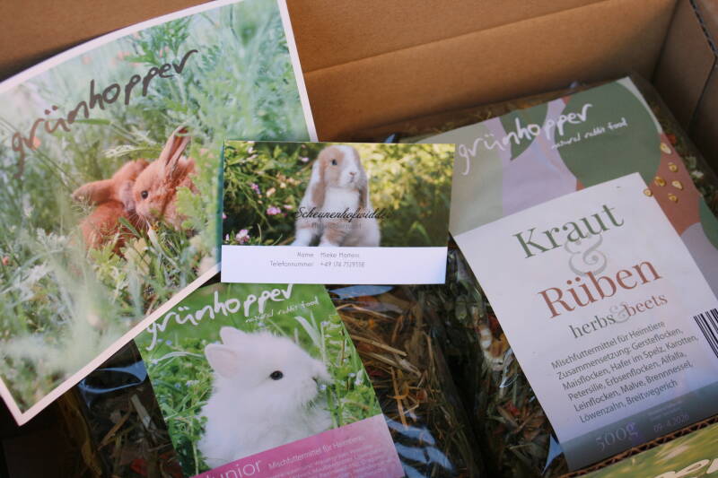 Außerdem ein gratis Futterpaket mit Rabattcode für die Website "grünhopper"