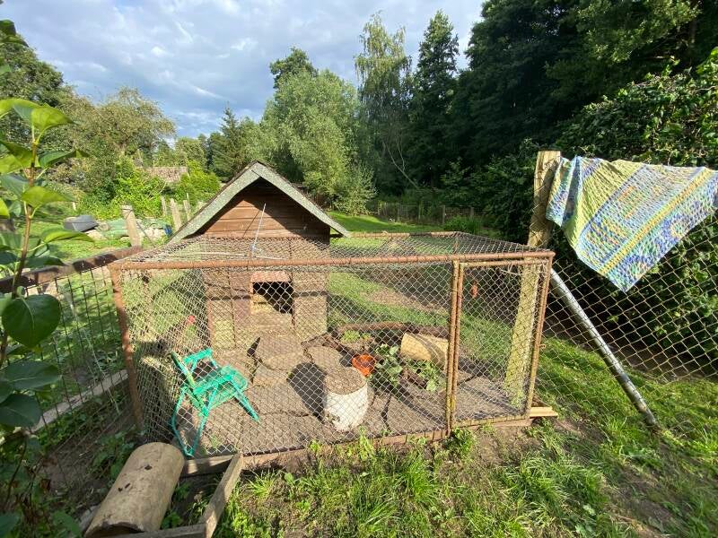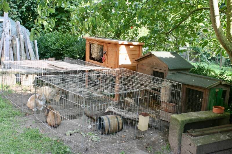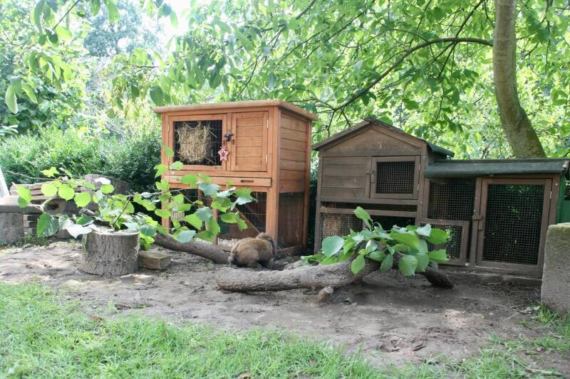 ...30 Quadratmeter groß mit Schutzställen und Spielzeugen aller Art aus natürlichem Holz.